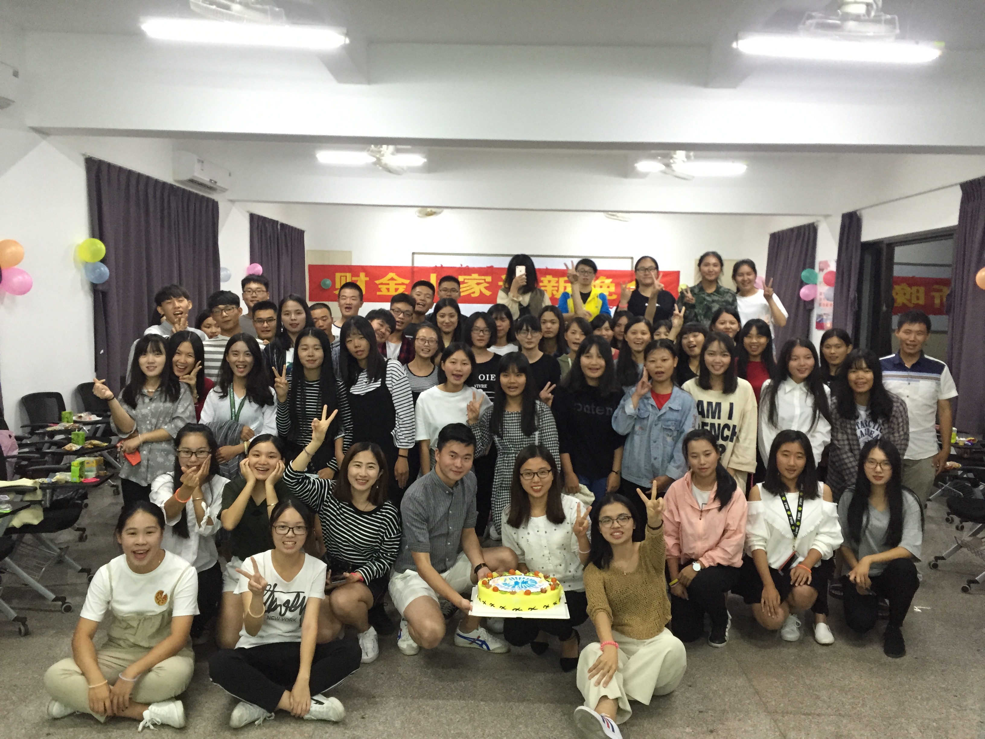 1022日晚,财政学与金融学系团总支迎新晚会在新区普照楼205拉开了帷幕。财政学与金融学系团总支书记赖桂全老师、财金系团总支前副书记2013级校友李立伟参加。