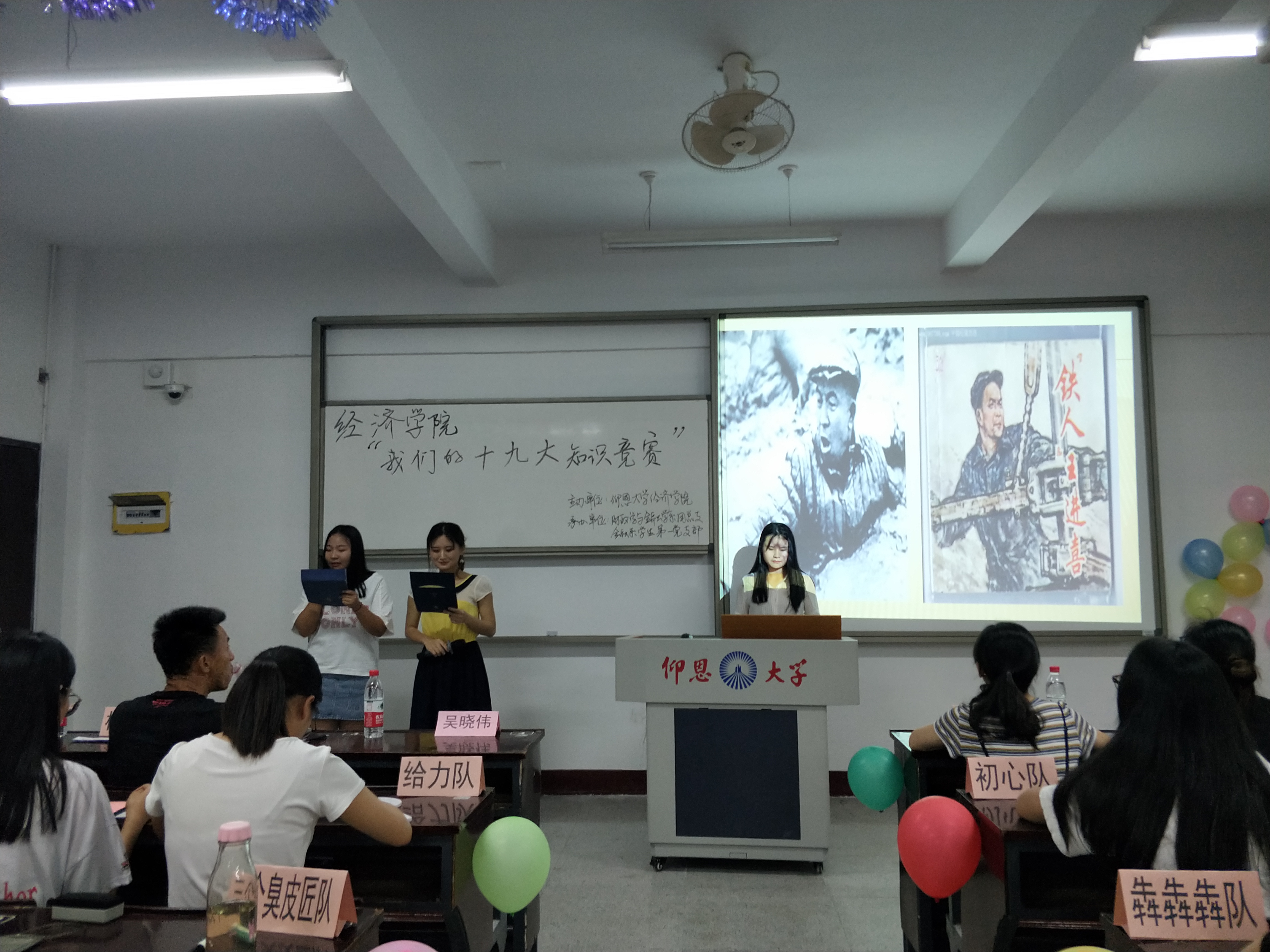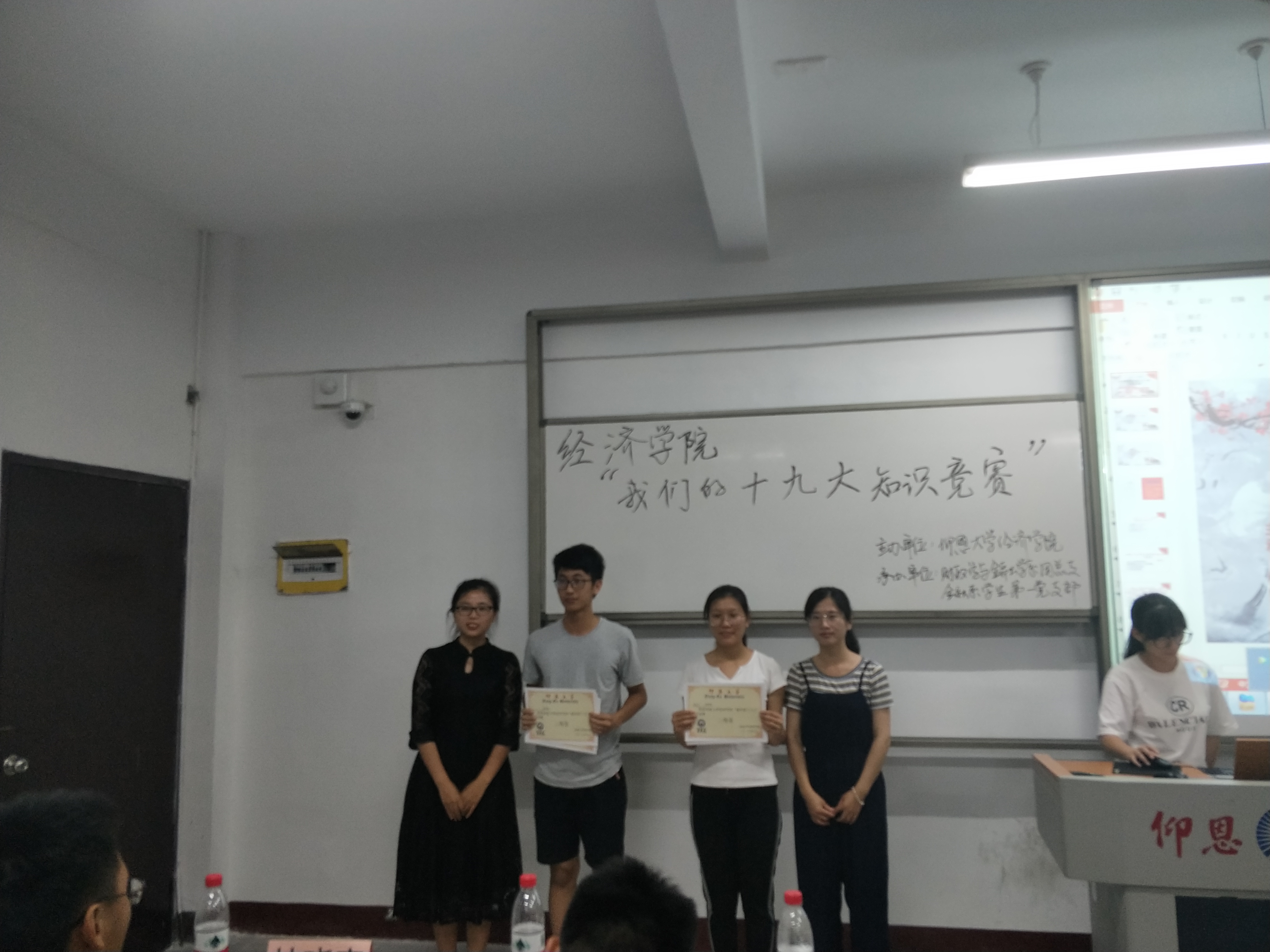 6月4日晚19时,由beat365vip官网登录入口主办,财政学与金融学系团总支以及金融系学生第一党支部共同承办的“我们的十九大”知识竞赛活动于仰恩楼B1-207室举行。beat365vip官网登录入口学生会指导老师林珊珊、党总支组织委员兼金融系学生第一党支部书记何丽玲、团委书记陈建鑫、财政学与金融学系团总支书记赖桂全、经贸系学生第一党支部书记林晓富出席了此次知识竞赛活动。金融系全体支部成员参与。