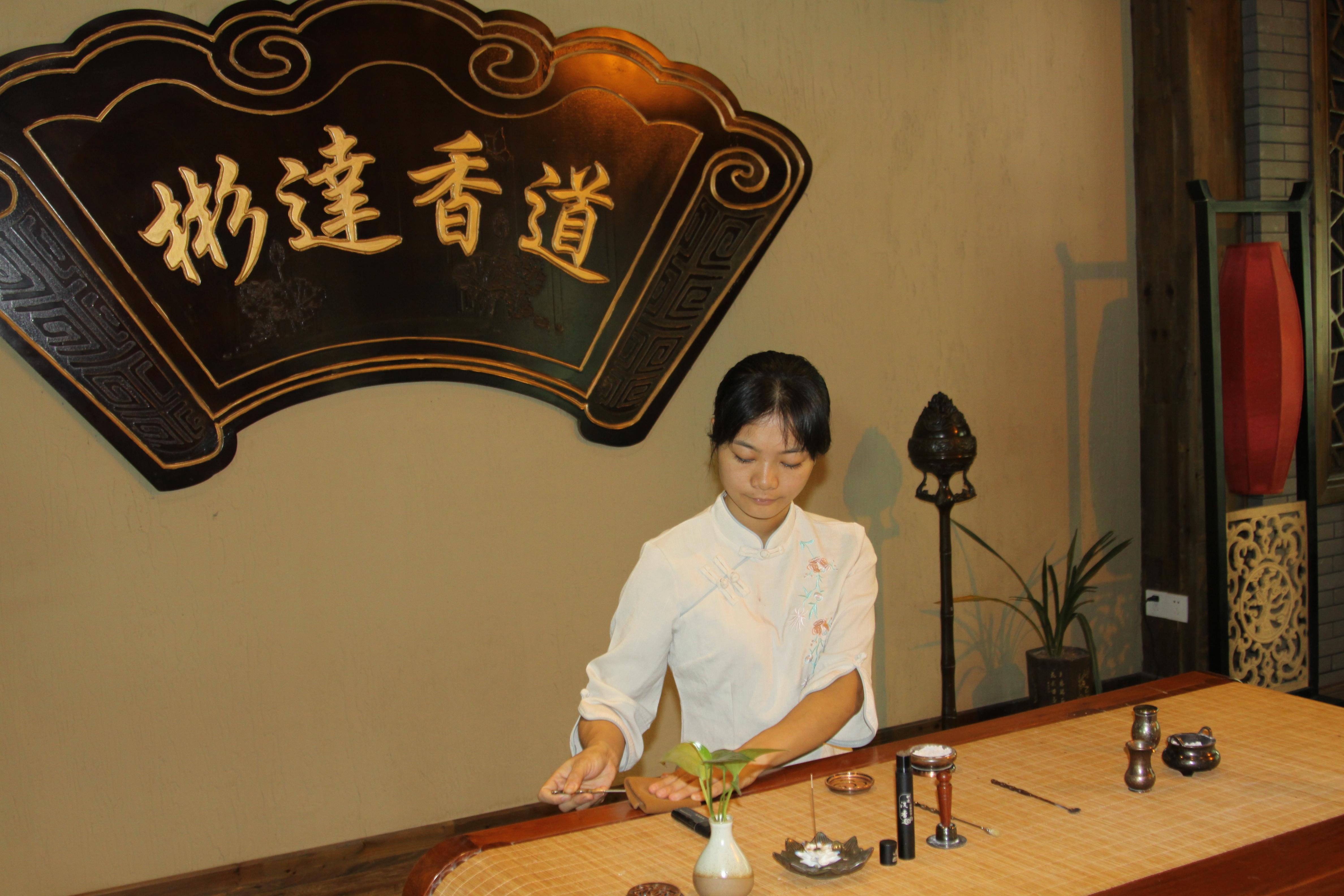 (图为该公司香道表演者进行香道表演)