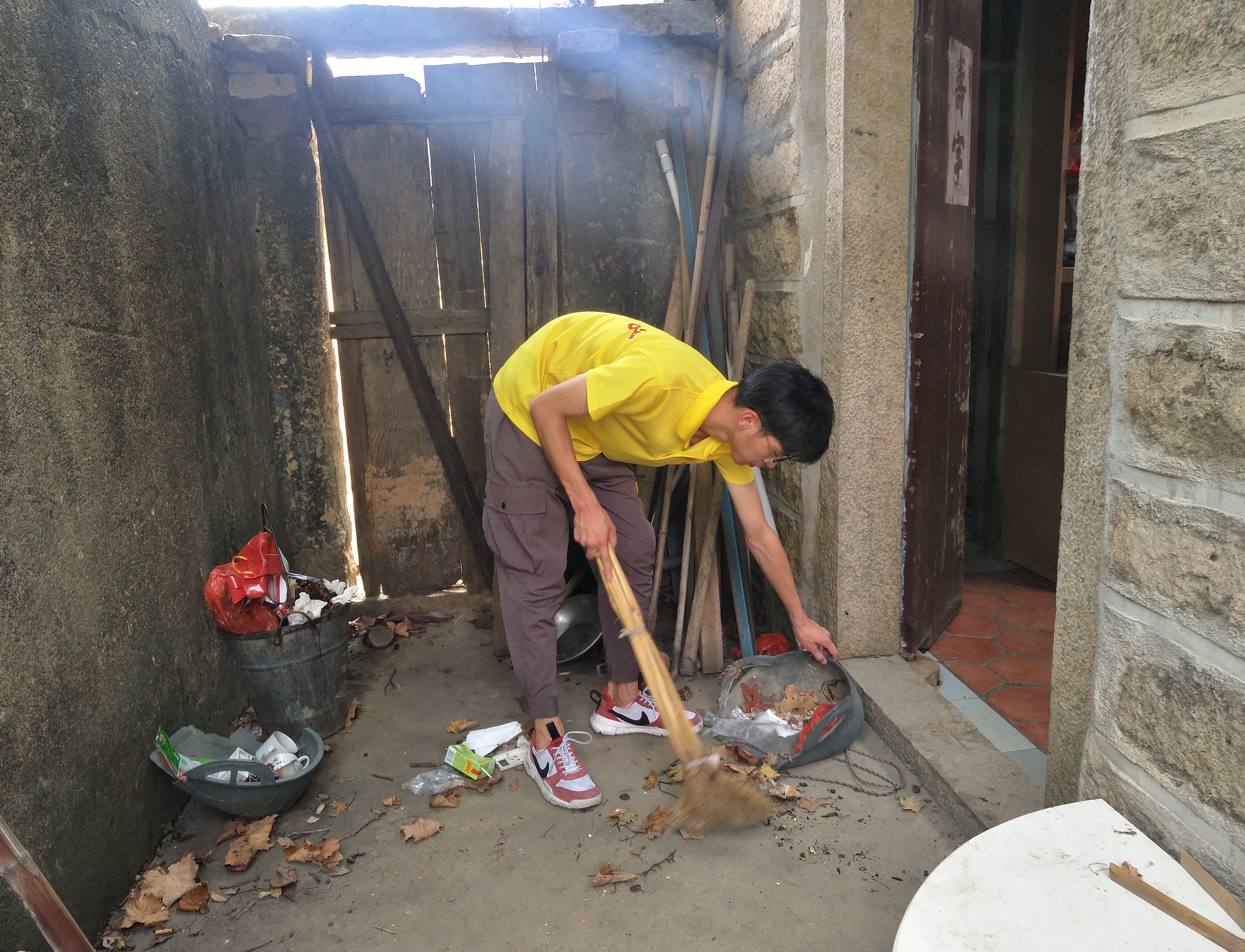 (图为实践队队员帮贫困户打扫卫生)