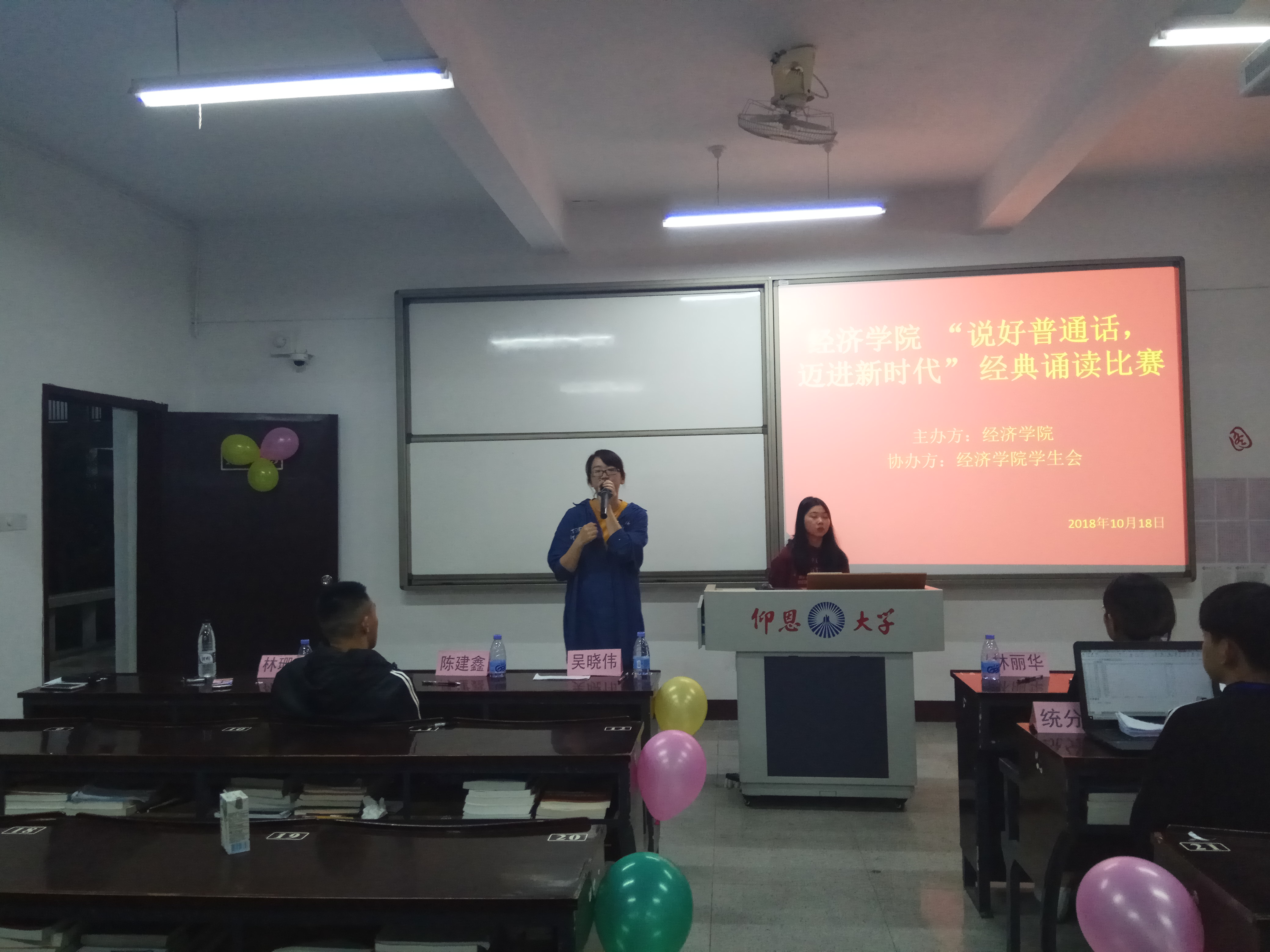 秋风飒爽,凉爽的秋天正踏步前行。由beat365vip官网登录入口主办,beat365vip官网登录入口学生会协办的 “说好普通话,迈向新时代”经典诵读比赛于10月18日晚19:00在仰恩楼A5-103火热开赛。本次活动共18名选手进入决赛,beat365vip官网登录入口全体辅导员担任评委。