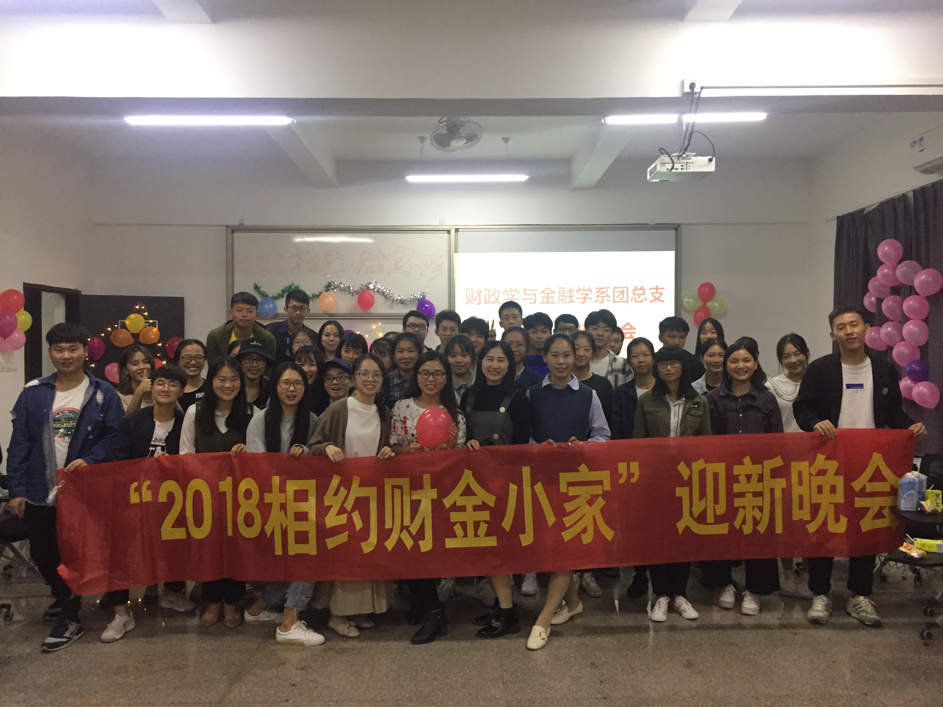 10月19日晚19:30,财政学与金融学系团总支于普照楼205举办2018级迎新晚会。出席本次晚会的有财金系团总支书记赖桂全老师、19届财金系团总支副书记周一弘、19届财金系团总支办公室主任陈宇姗、20届财金系团总支副书记卢彬欣与汪美燕,以及20届全体干部干事和18级全体干事。