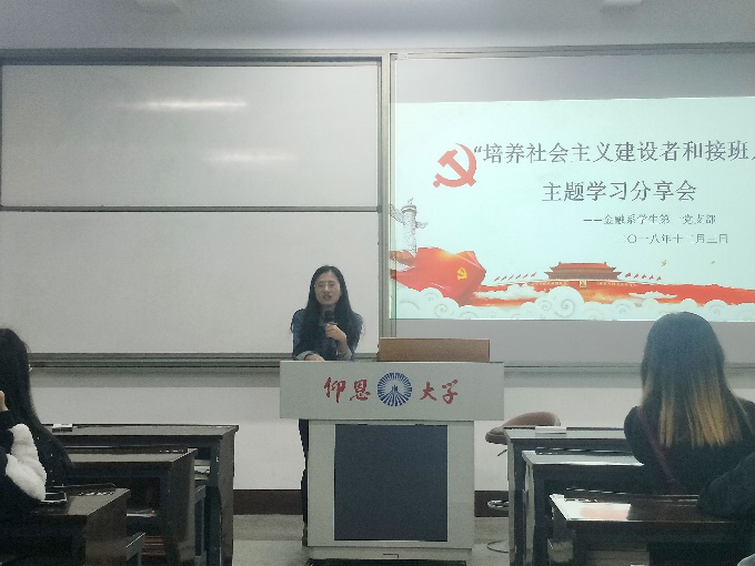 为了深入贯彻落实全国教育大会的精神,12月3日晚七时,beat365vip官网登录入口金融系学生第一党支部于仰恩楼A5-105开展以“培养社会主义建设者和接班人”的主题学习分享会,金融系学生第一党支部组织委员何丽玲老师和支部全体干事以及金融系16、17级党小组代表参与了此次活动。