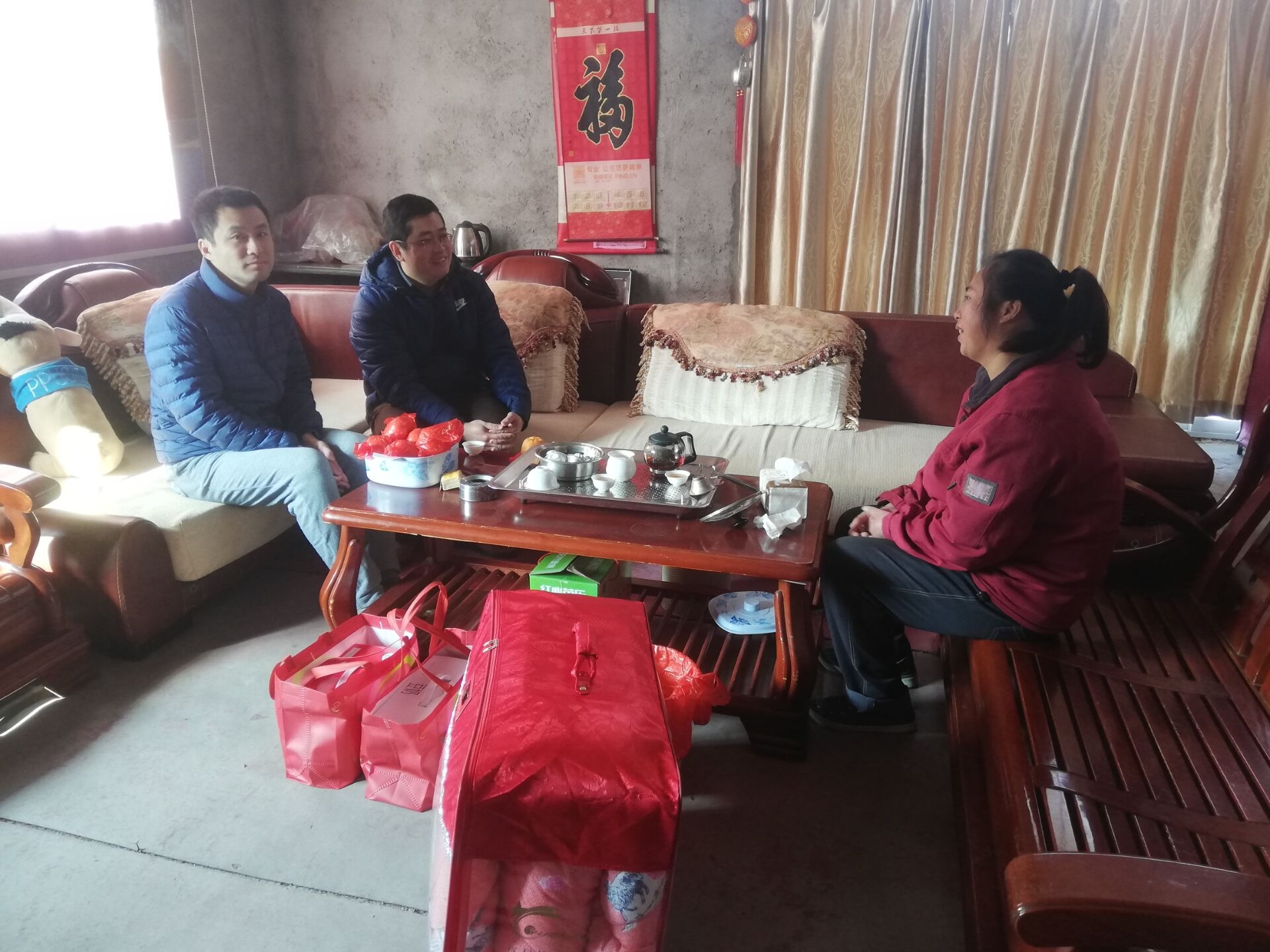 (图为慰问贫困家庭) 在慰问活动过程中,吴晓伟书记与每名贫困学生及家长亲切交谈,详细的了解贫困生家庭的生活状况,鼓励学生家长增强克服暂时困难的信心,用长远发展的目光支持学生完成学业,叮嘱贫困学生要自信坚强,保持积极的心态,同时要努力学习,获取更多的知识和本领,用知识改变自己的命运,争取成为对社会有用的人才。此外,针对2名情况,书记还积极联系实践基地为她们落实毕业实习事宜,在生活上有任何困难可以及时向学院反映,学院还为家庭经济困难学生送上了精心准备的春节慰问品,包括棉被、保温杯、牛奶、豆奶、春联和台历。学生家长对老师们给予的关心支持表示衷心的感谢,并表示将鼓励、督促孩子克服困难、勤奋学习,学生也表示一定会加倍努力学习,不辜负国家、学校的关怀和家长的希望,以优异的成绩回报家庭、学校和社会。