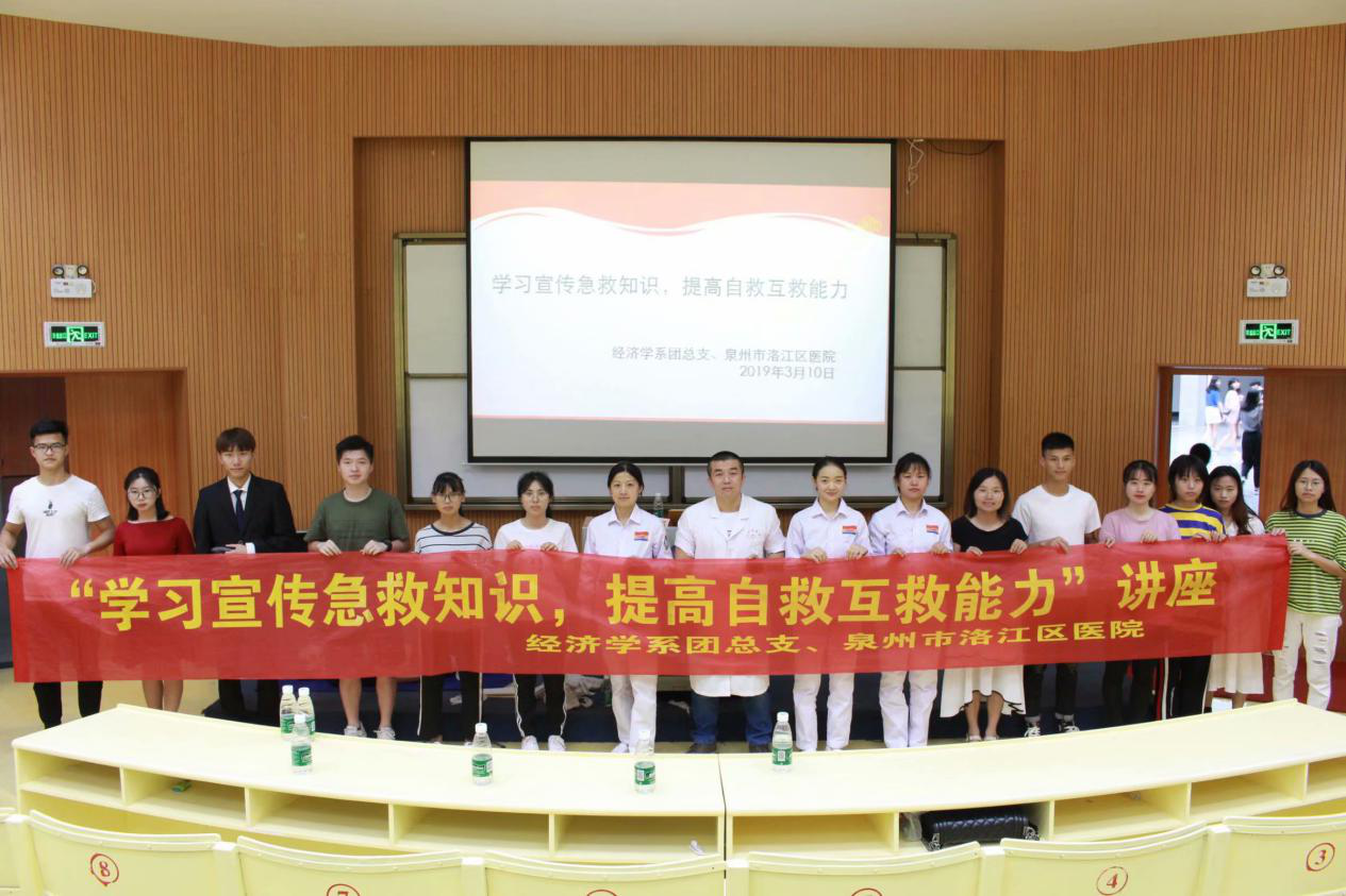 5月30日下午4点30分,经济学系团总支于新区惟勤讲堂与泉州市洛江区医院联合举办了以“学习宣传急救知识,提高自救互救能力”的主题讲座。此次讲座特邀泉州市洛江区医院急诊科主任庄竟扬医师主讲、3位医护人员现场急救技能指导。经济学团总支书记林丽华老师及经济系全体同学出席了本次讲座。
