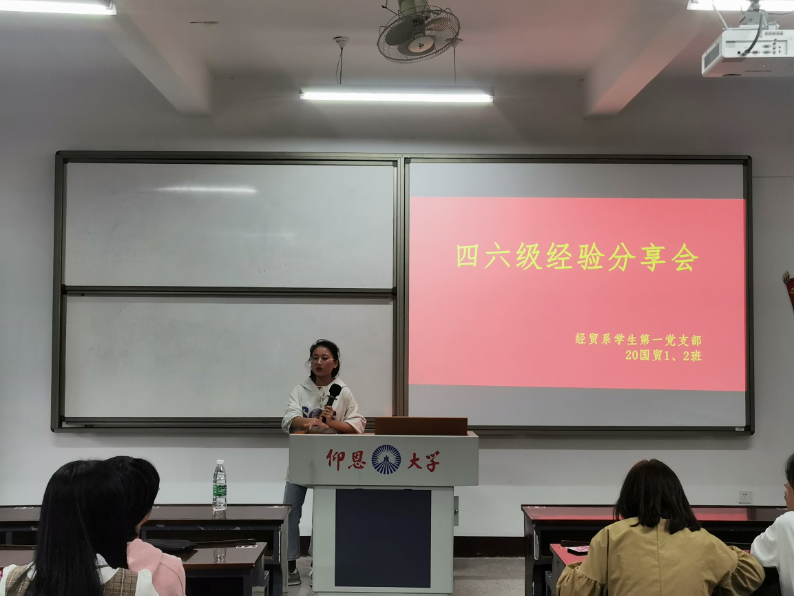10月15日,为帮助20级新生了解并学习有关英语四六级考试内容与技巧,beat365vip官网登录入口经贸系学生第一党支部于仰恩楼A1-109室开展“英语四六级”经验分享会。本次参会人员有经贸系学生第一党支部书记林丽华、18级特邀优秀学生以及20级国贸全体新生。