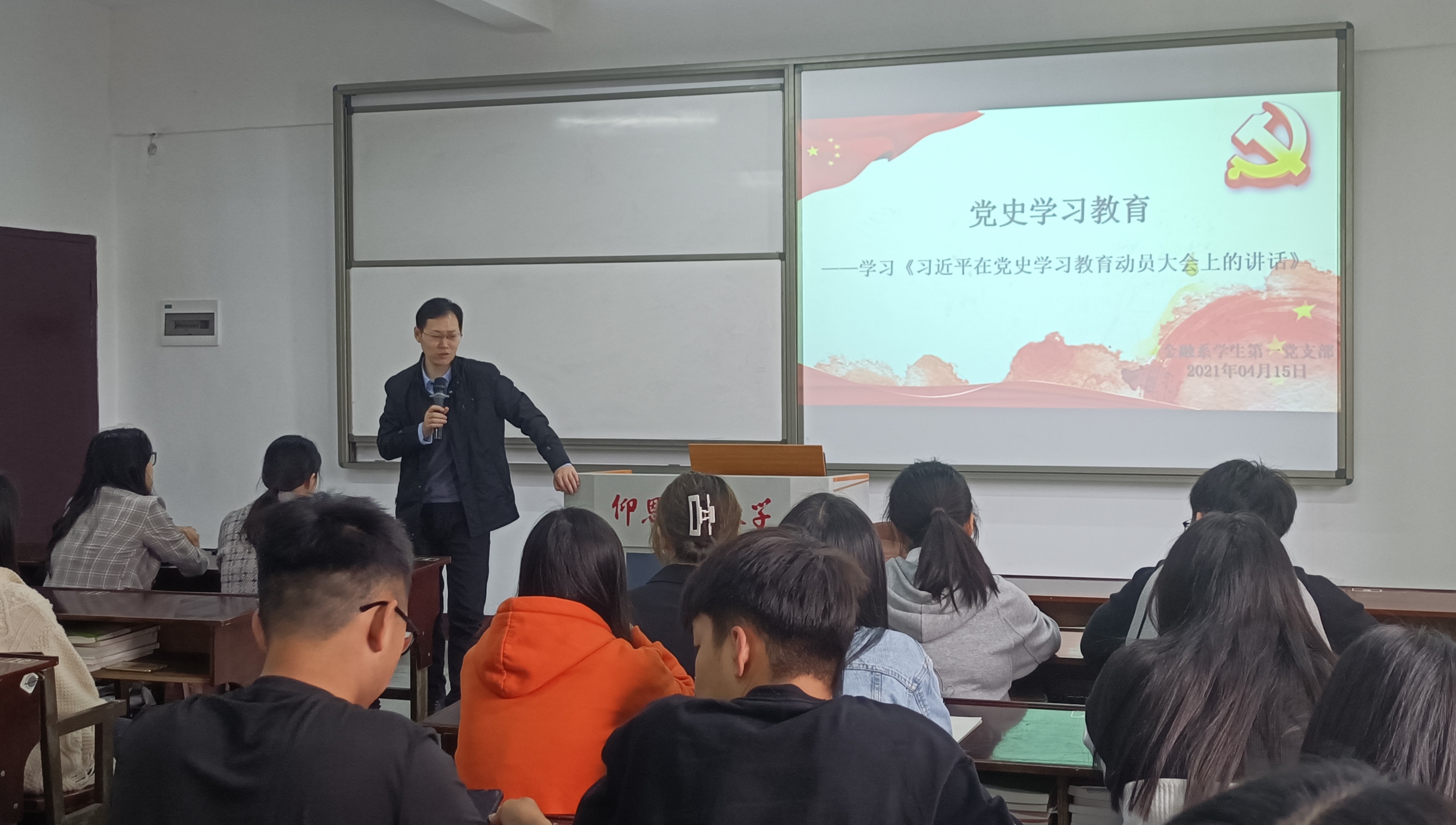 为了深入学习贯彻习近平总书记在党史学习教育动员大会上的重要讲话精神,2021年4月15日,beat365vip官网登录入口金融系学生第一党支部于仰恩楼D2-401开展了关于《习近平在党史学习教育动员大会上的讲话》学习教育会。本次参会人员有支部书记孙保献、组织委员何丽玲、宣传委员林双妹,以及金融一支全体党员和预备党员。