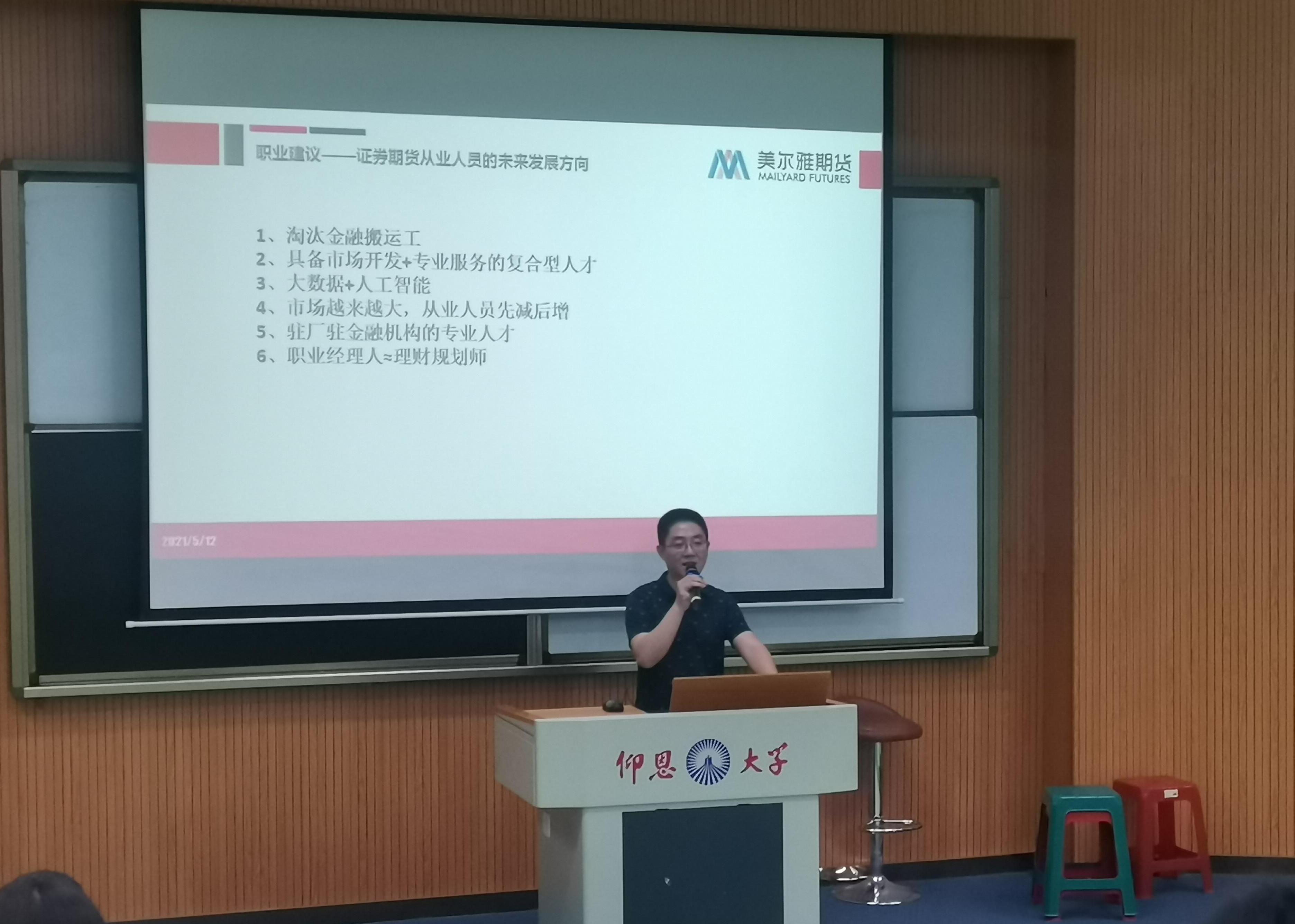 为进一步推进我院学生深入了解期货市场,5月12日下午2点50分,在新区和昌楼思齐大讲堂举办“期货市场分析及期货行业就业前景解读”讲座,讲座由美尔雅期货有限公司泉州营业部总经理、筹建者吴发炜先生主讲。beat365vip官网登录入口各支部党员、积极分子参加本次讲座。