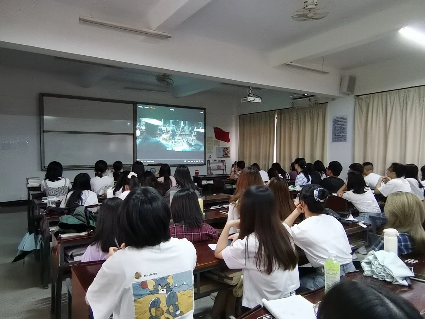 本次活动以“看红色大片,忆历史瞬间,谈感想领悟”为主题,通过观看影片《建军大业》让同学们重温中国共产党创建中国人民军队的故事。电影生动在展现了中国人民解放军走过的不平凡之路,使同学们深刻感受到革命先辈将国家民族利益置于个人安危之上的牺牲精神和坚不可摧的信仰力量。活动最后,组织委员何丽玲勉励同学们要通过重温历史,珍惜现在的幸福生活,不忘初心、继续前行,弘扬好红色革命精神,做新时代的接班人!