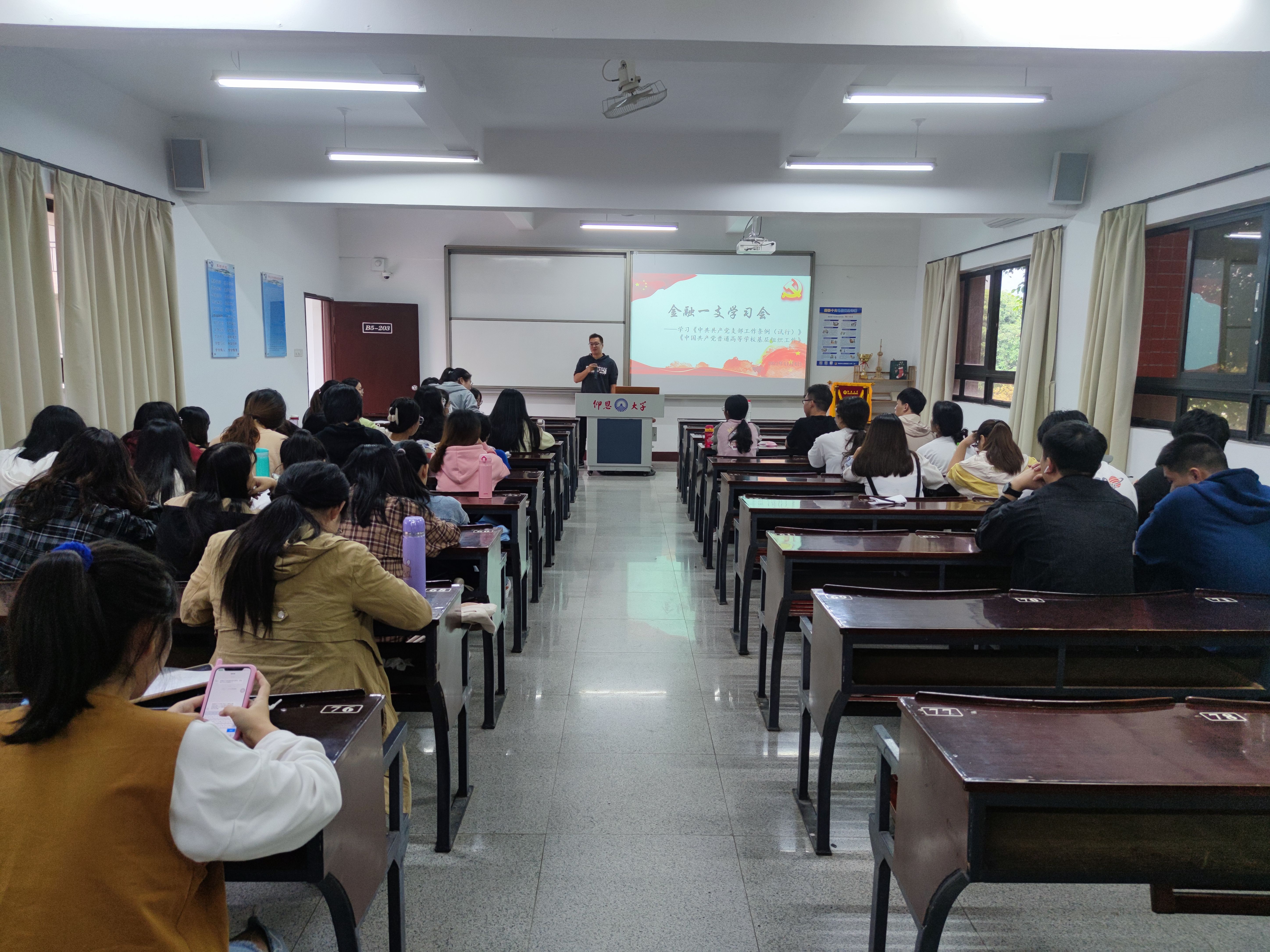 2021年11月4日下午4:00,beat365vip官网登录入口金融系第一党支部在仰恩楼B5-203开展《中国共产党支部工作条例(试行)》和《中国共产党普通高等学校基层组织工作条例》学习会,深入领会《条例》精神。参与人员有宣传委员詹奕椿老师、组织委员谢坤宏老师,支部全体党员以及19和20级积极分子。