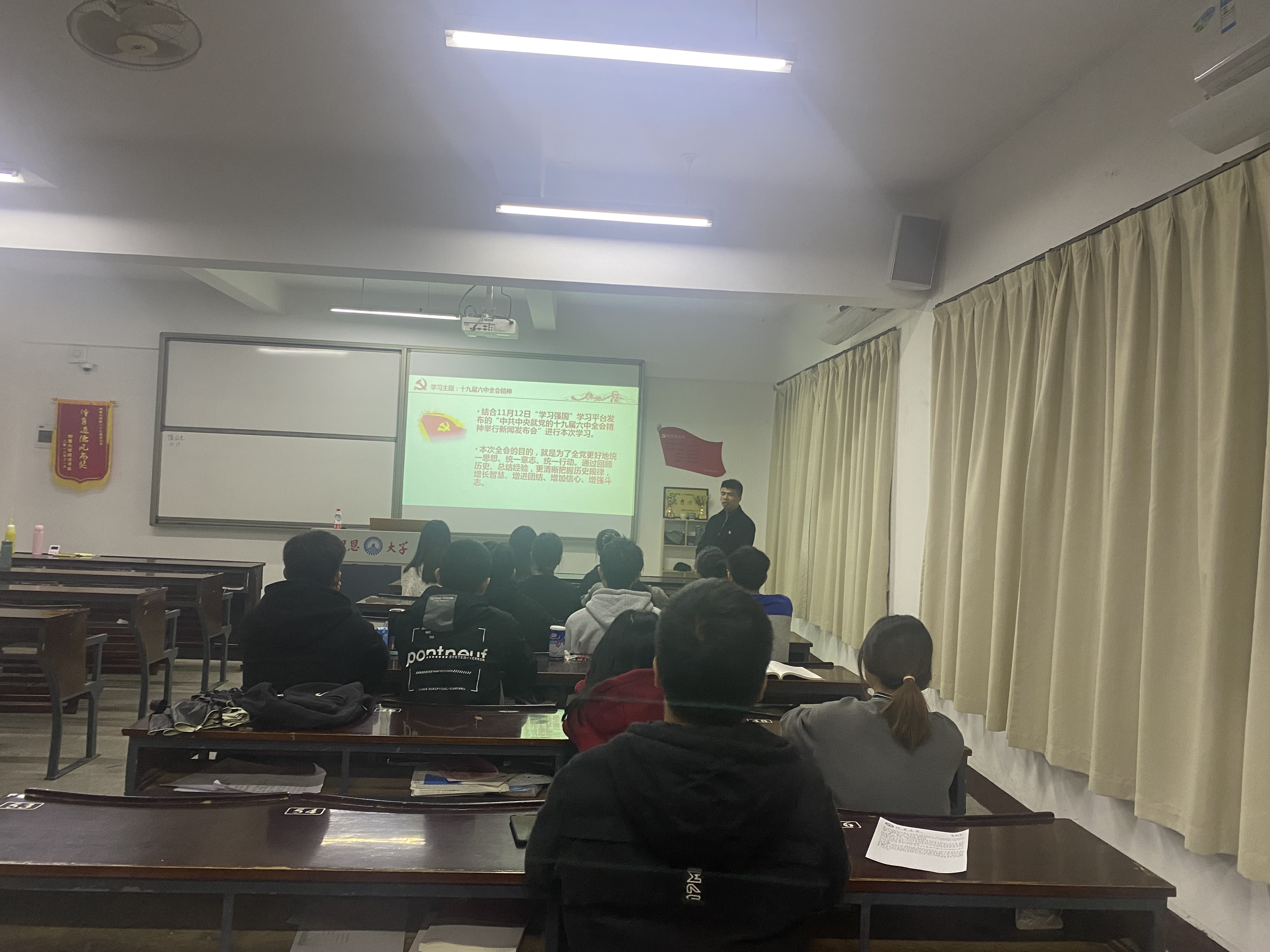 为深入学习贯穿党的十九届六中全会精神,进一步深化对全会精神的认识和理解,2021年11月22日晚,beat365vip官网登录入口经济系学生第二党支部于仰恩楼B4-201室开展学习“十九届六中全会精神”主题党日活动。本次活动由经济系学生第二党支部书记阙梦露主持,并邀请beat365vip官网登录入口副院长陆泽波老师为我们解读“十九届六中全会精神”。