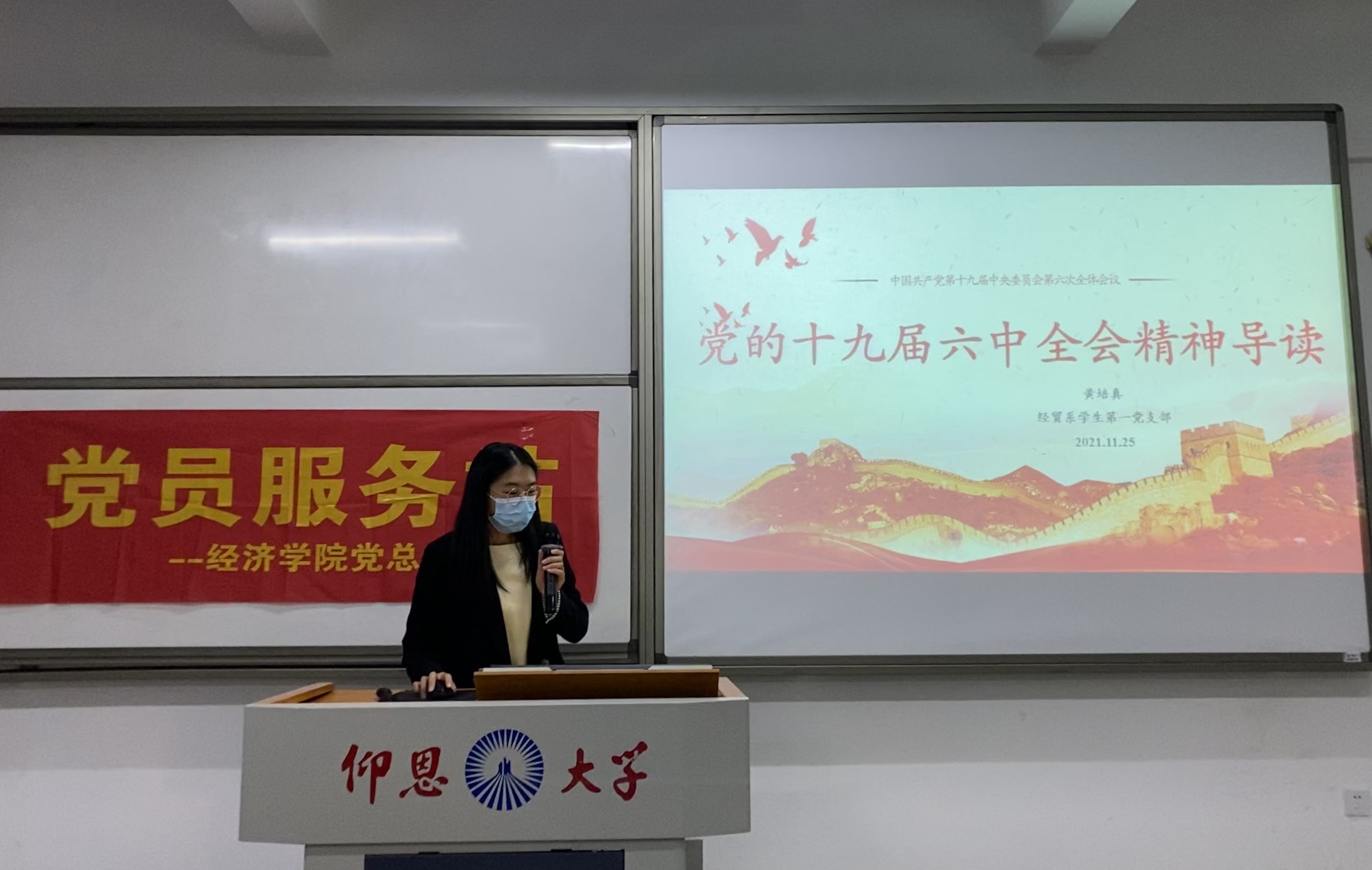 为了让同学们进一步了解和学习党的十九届六中全会的内容,11月25日beat365vip官网登录入口经贸系学生第一党支部于仰恩楼B2-205开展书记好党课活动“党的十九届六中全会精神导读”。支部全体党员以及积极分子参加了本次活动。