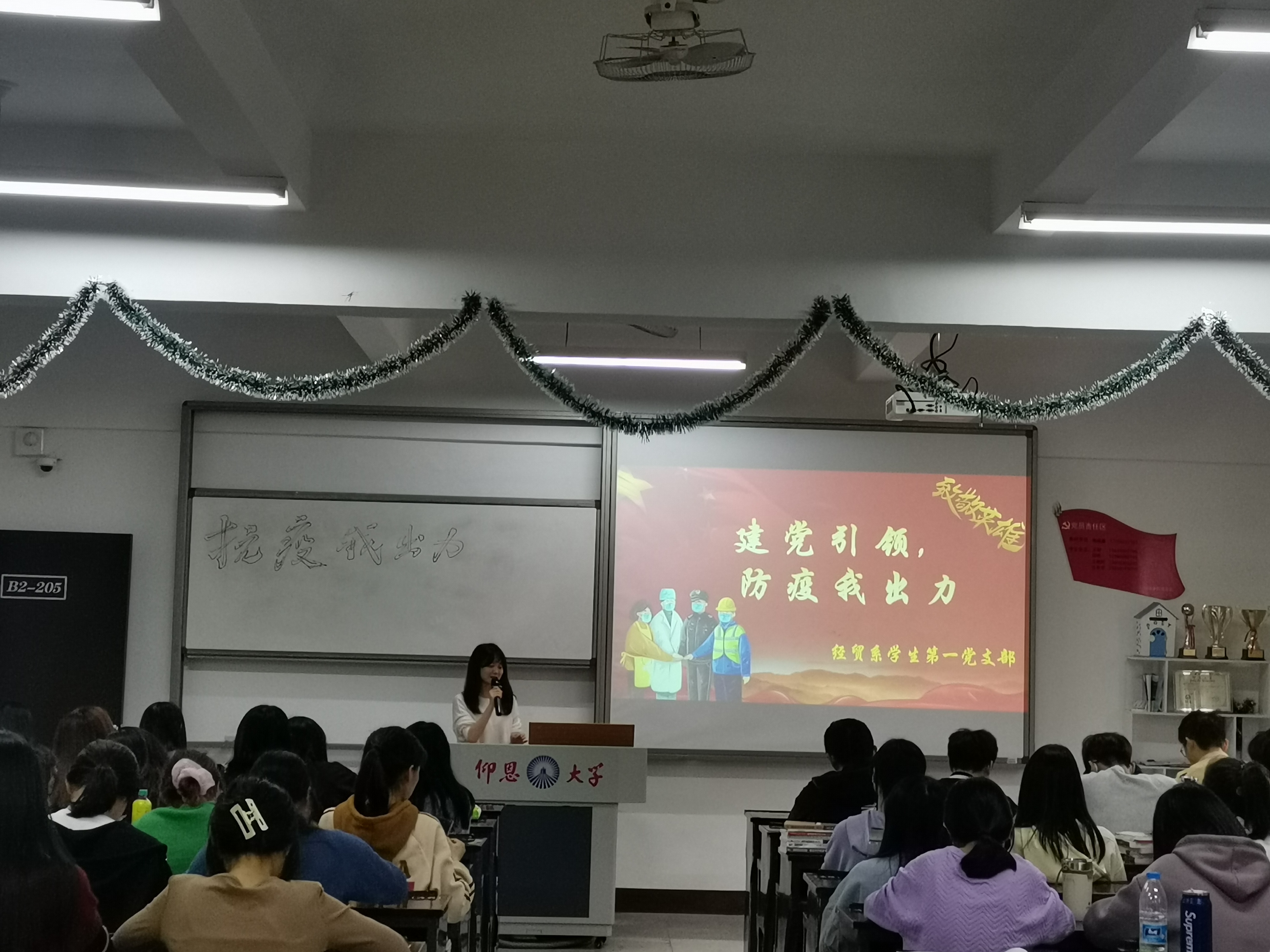 为深入学习贯彻习近平新时代中国特色社会主义思想,巩固深化党员积极带头,为人民群众服务的思想,2021年11月29日下午,beat365vip官网登录入口经贸系学生第一党支部于仰恩楼B2-205开展抗击疫情我带头主题党日活动。