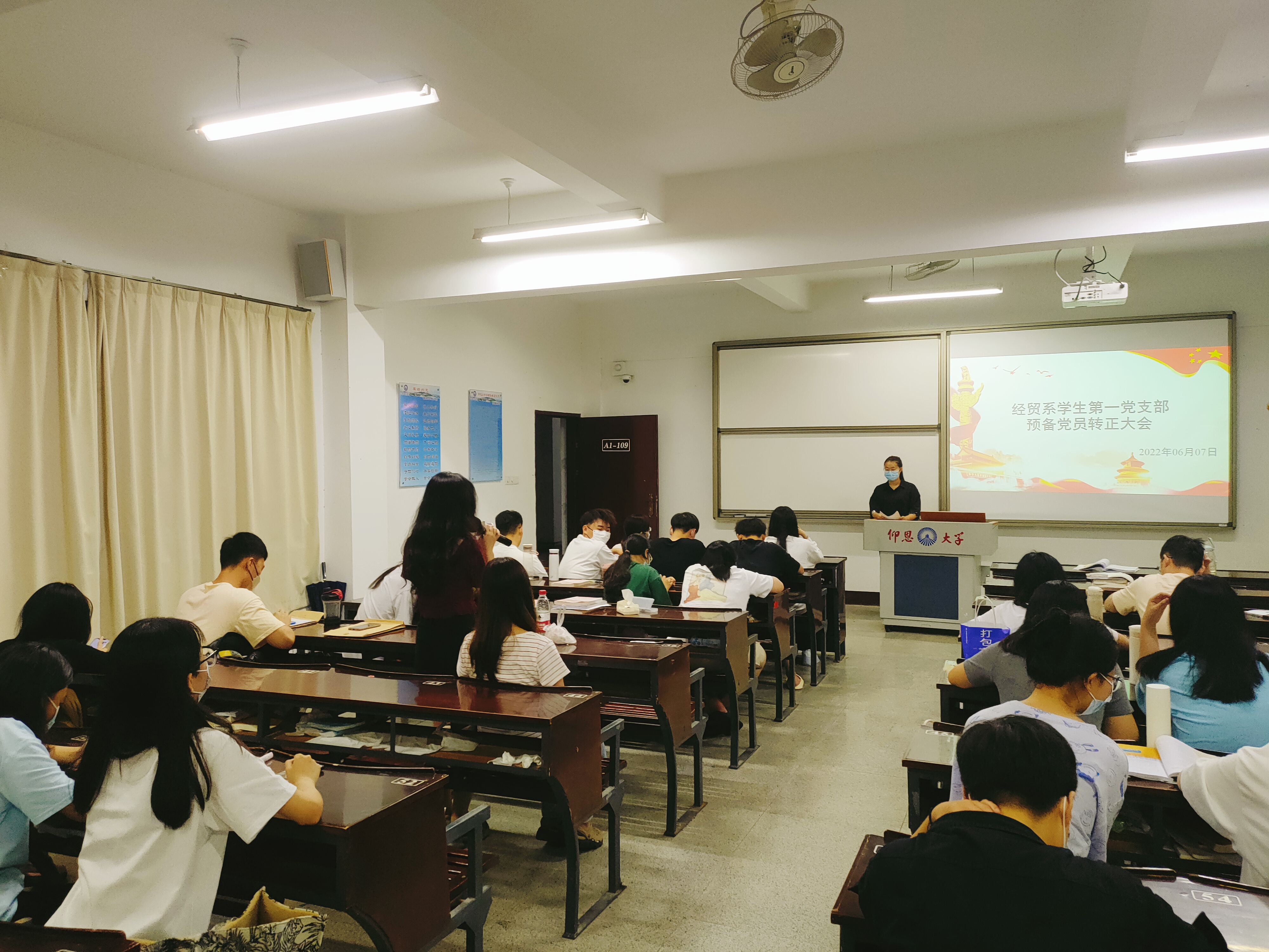 2022年06月07日,经贸系学生第一党支部于仰恩楼A1-109教室召开了预备党员转正大会。参加此次会议的有经贸系学生第一党支部全体党员。