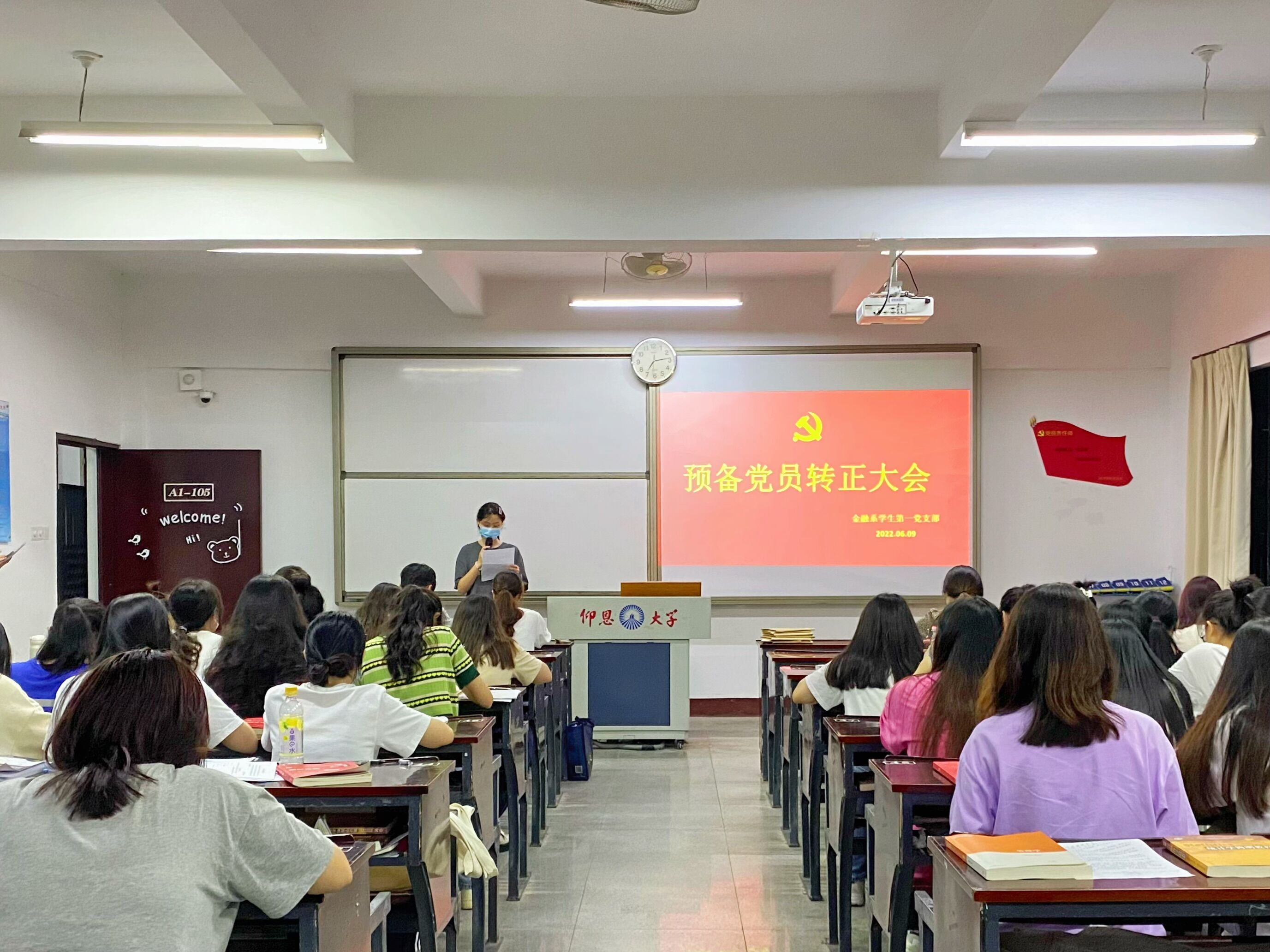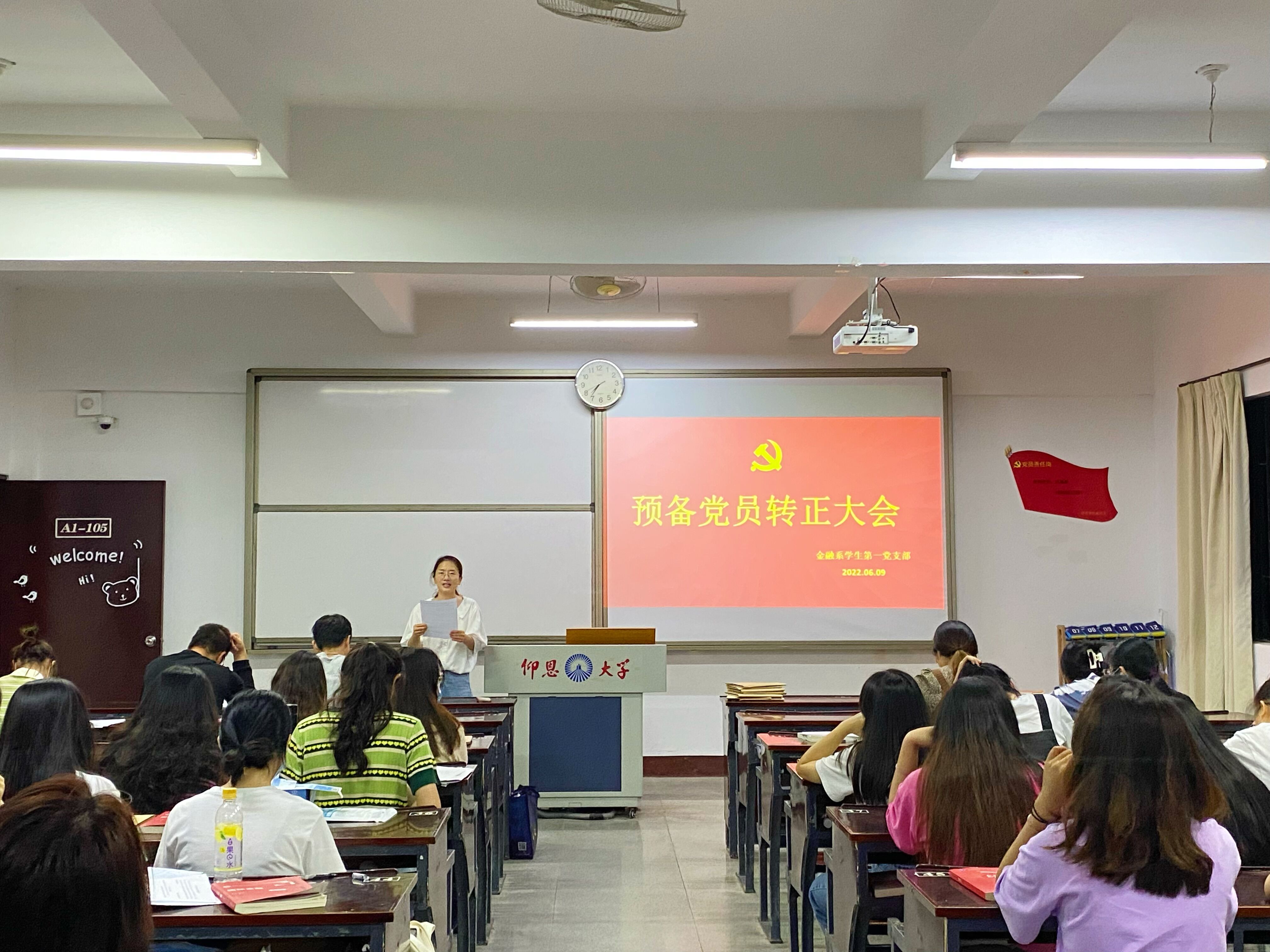 2022年6月9日晚上7:00,为进一步加强党员队伍建设,增强党员队伍的生机和活力,beat365vip官网登录入口金融系学生第一党支部在仰恩楼教室A1-105召开预备党员转正大会。此次大会的参与人员有支部书记何丽玲老师、组织委员谢坤宏老师和宣传委员詹奕椿老师,以及支部全体学生党员。