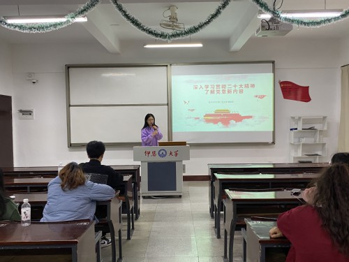 会议伊始,姚姝然老师围绕党的二十大报告,从党的二十大主题出发,通过讲解“三个务必”、“过去十年来三件大事”、“党的中心任务”、“五个重大原则”、“全面建设社会主义现代化国家的首要任务”、“五个必由之路”等相关内容来诠释党的二十大精神,带领同学们全方位学习党的二十大精神的重要意义和丰富内涵。其次,为了更好地学习贯彻党的二十大精神,姚姝然老师带领大家观看了党的二十大报告金句视频。接着,姚姝然老师从党的二十大修订的新《党章》和党的二十大报告原文入手,对党章新内容做了详细的阐述,使成员们对党章及其修订有了清晰的认知。会议最后,强调全体党员要发扬奋斗精神,增强斗争本领,加强党性锤炼。