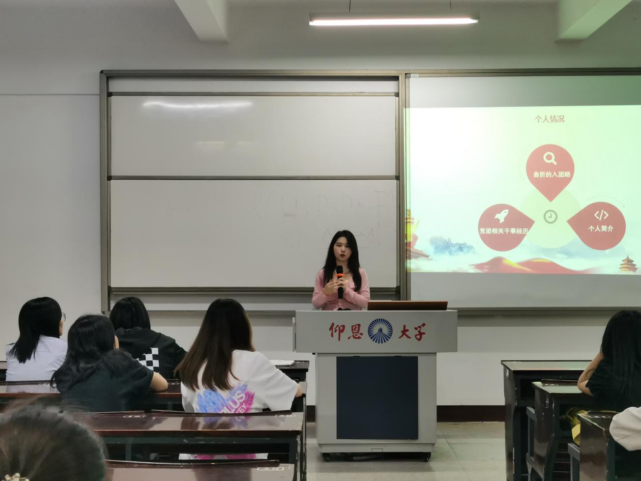 首先,李荣美同志对本次会议的议程作简要介绍。随后,18名推优对象依次上台进行汇报其自身个人情况,入党决心,并表明态度,并就支部支委所提出的问题进行答辩,由支委同志考察其入党动机。最后,支委同志就推优对象谈话内容进行讨论。