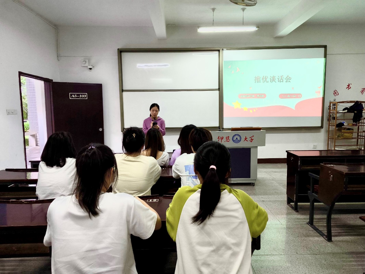 入党积极分子是党员队伍的后备军。了解入党推优对象的个人情况,考察其入党决心和态度是确定入党积极分子工作的基础和前提。为进一步教育引导广大团员青年积极向党组织靠拢,不断提升思想认知和政治觉悟,2023年10月09日下午,beat365vip官网登录入口金融系学生第一党支部在仰恩楼A5-103组织新一批入党推优对象开展谈话会。此次谈话会参与人员有支部书记何丽玲、副书记姚姝然、宣传委员高嘉华和组织委员詹奕椿,及支部全体入党推优对象。