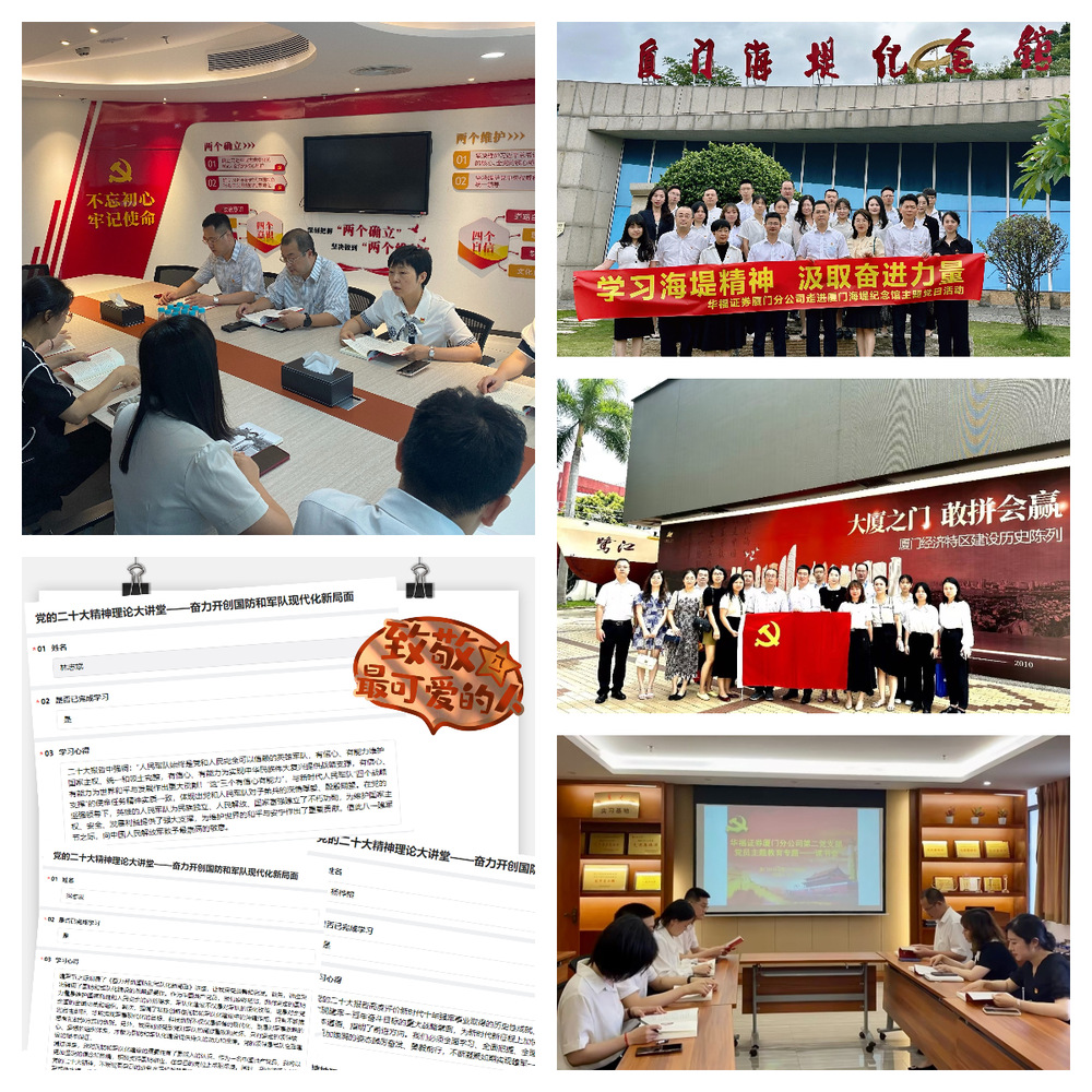 2.观摩学习取真经,见贤思齐强党建。为进一步提升党建工作水平,创新党建思路,厦门分公司2022年组织参加厦门上市公司协会举办的企业党建交流,2023年组织参加厦门证券基金业协会、厦门鹭岛投教联盟主办的厦门证券期货行业文化主题交流活动,与各单位从党建引领、培训宣导、廉洁从业、特色文化、投资者教育与保护、履行社会责任、服务实体经济等方面展开详细交流,汲取先进经验。