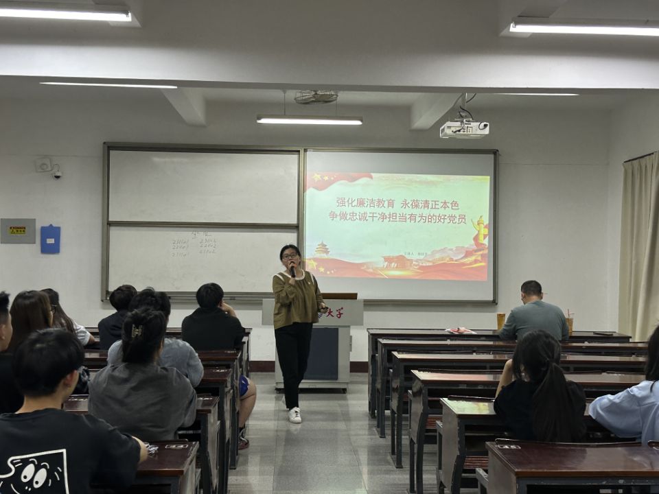 为加强新时代廉洁文化建设,深入学习领会习近平总书记关于全面从严治党、党风廉政建设和反腐败斗争的重要论述,教育引导广大党员、干部增强不想腐的自觉,明大德、守公德、严私德,筑牢思想道德防线,增强拒腐防变能力,涵养持廉守正的时代新风。2024年5月16日晚,beat365vip官网登录入口经济系学生第一党支部在新区仰恩楼C5-305组织开展了“强化廉洁教育,永葆清正本色”为主题的党课。党总支副书记赖桂全老师作为党课主讲人,经济系学生第一党支部书记武培汾老师、组织委员仲平老师、宣传委员杨越老师和支部全体成员参与本次活动。