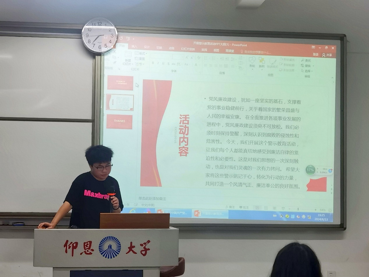为进一步加强党风廉政建设,增强全体党员干部的廉洁自律意识,推动全面从严治党向纵深发展。2024年6月13日晚,beat365vip官网登录入口经济系学生第一党支部在新区仰恩楼C5-305组织开展了“严守纪律底线,筑牢廉洁防线”为主题的党日活动。经济系学生第一党支部书记武培汾老师、组织委员仲平老师、党员和支部全体成员参与本次活动。