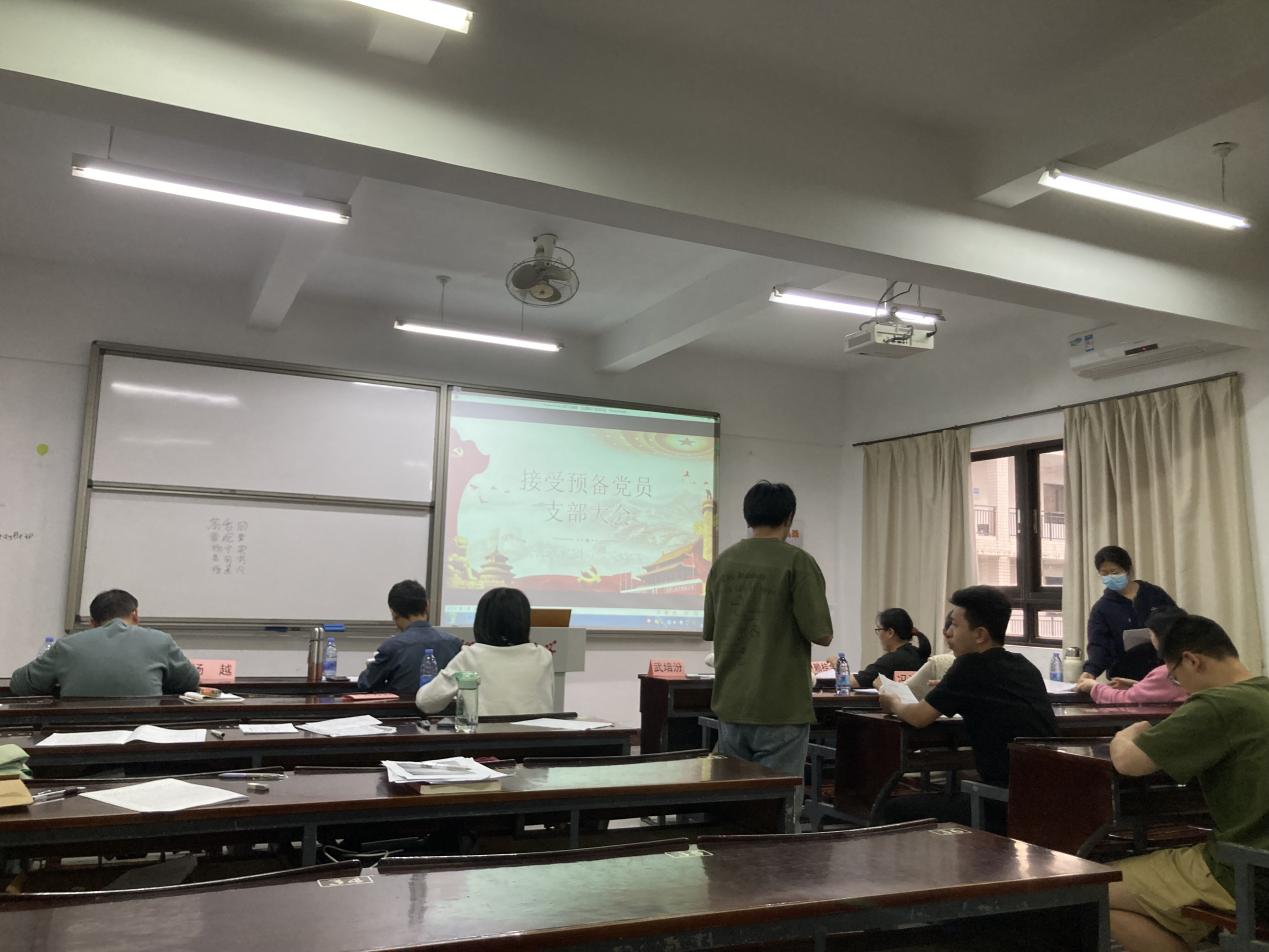 会上,发展对象汇报对党的认识、入党动机、本人履历、家庭和主要社会关系情况,以及需向党组织说明的问题;由入党介绍人介绍发展对象的主要情况,并对其能否入党表明意见;组织委员代表支委会报告对发展对象的审查情况;支部的师生党员针对上述人选展开了全面深入的探讨,与会的师生党员怀着对五位同志高度负责的态度,踊跃地进行发言交流,围绕各发展对象现存的不足之处提出具有建设性的改进意见;并采取无记名投票的方式进行表决,最后,支部书记宣读支部大会的决议。