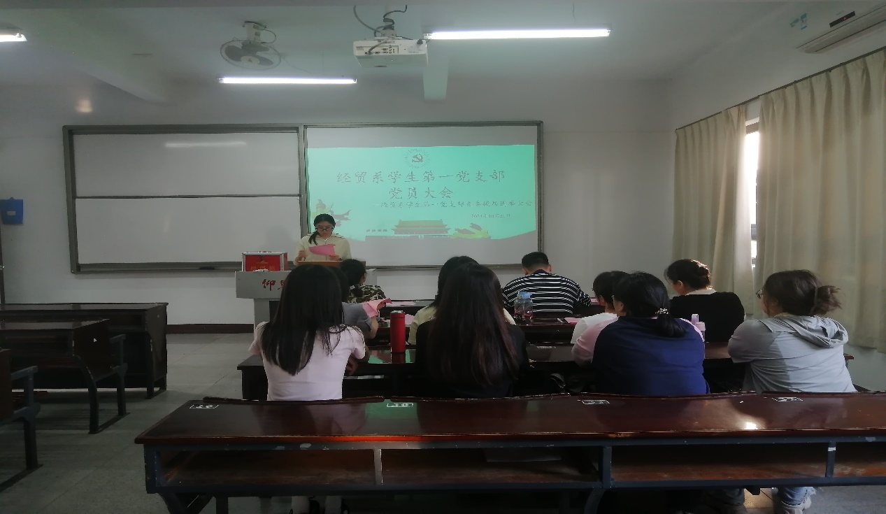 1021日下午4:00,经贸系学生第一党支部于仰恩楼A3-105组织召开党员大会开展支部换届选举工作此次会议由支部书记黄培真主持。