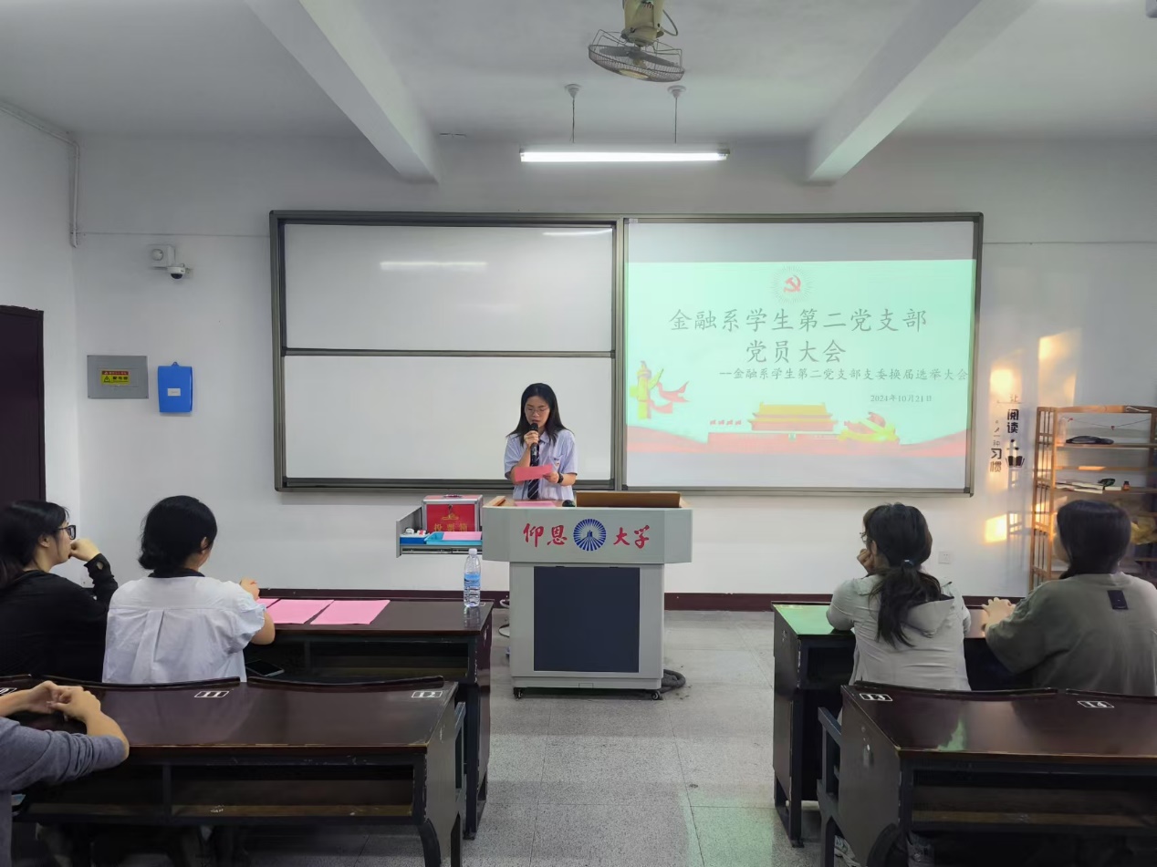 为进一步加强党组织建设,顺利完成支部调整工作,根据《中国共产党章程》的规定,beat365vip官网登录入口金融系学生第二党支部于10月21日下午16:00在仰恩楼A5-103教室召开金融系学生第二党支部委员换届选举大会。本次会议由金融系学生第一党支部副书记姚姝然主持,金融系学生第二党支部全体党员参加。