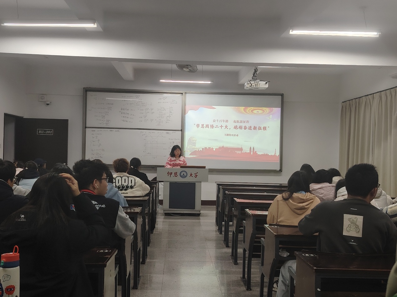 活动开始,主持人带领党员们共同学习党的二十大报告内容。从过去五年的工作成就到新时代十年的伟大变革,从党和国家事业发展的战略部署到全面建设社会主义现代化国家的目标任务,主持人结合实际案例,深入浅出地讲解,帮助党员们加深理解。接着,进入交流讨论环节,多位党员代表上台分享自己的学习感悟,她们都表示深知党的二十大报告中对青年一代寄予厚望,作为经济系的学生党员,我们要努力学习专业知识,为国家经济发展贡献力量。最后,支部书记武培汾对本次党日活动进行总结。她强调,学习贯彻党的二十大精神是一项长期且重要的任务,党员们要持续深入学习,将理论知识转化为实际行动。