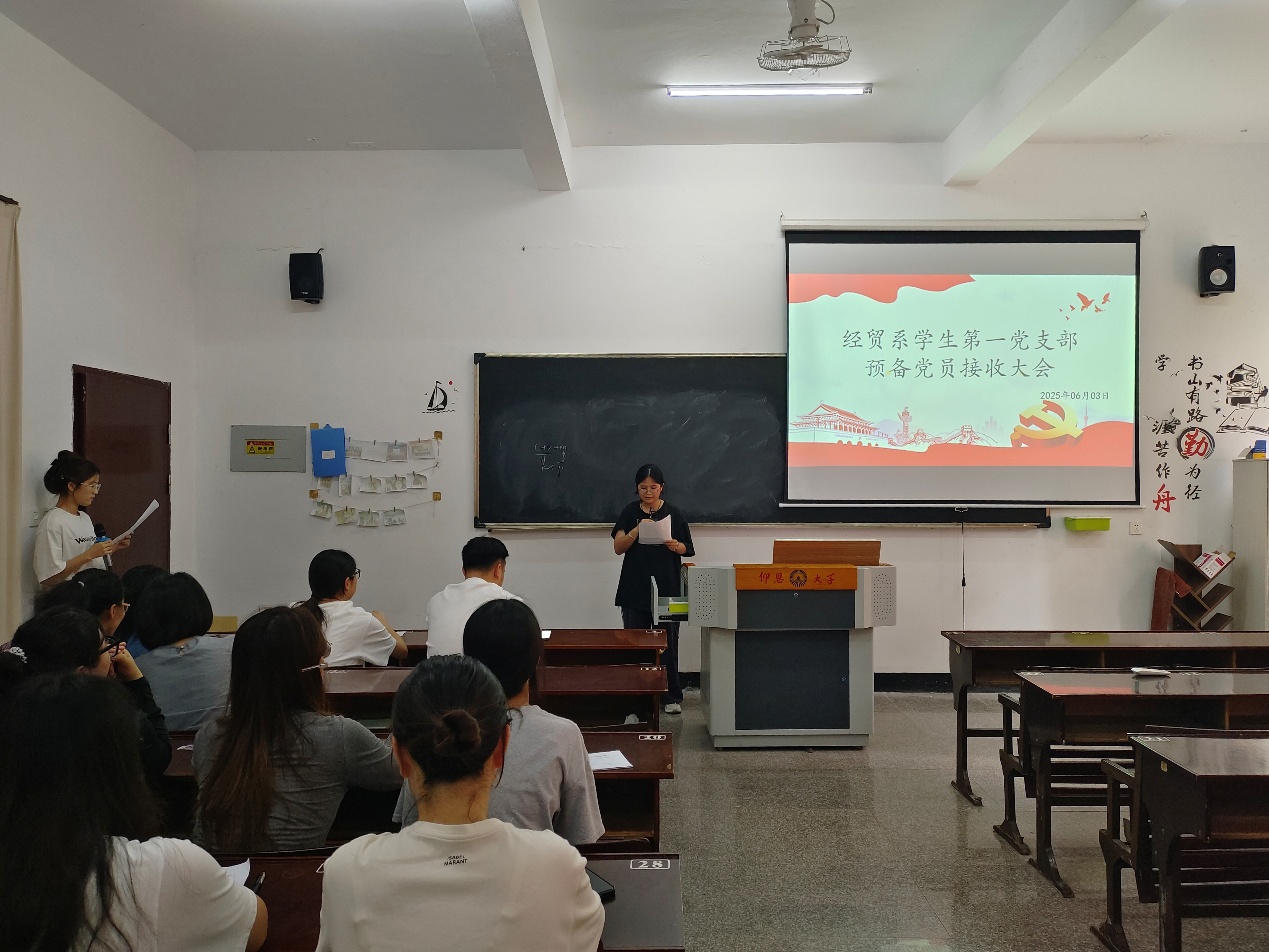 63日下午,经贸系学生第一党支部于普照楼101A组织召开预备党员接收大会。支部全体党员参加此次会议。本次会议由支部书记黄培真同志主持召开。