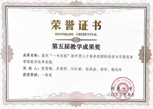 图8 教学改革获校级教学成果奖一等奖