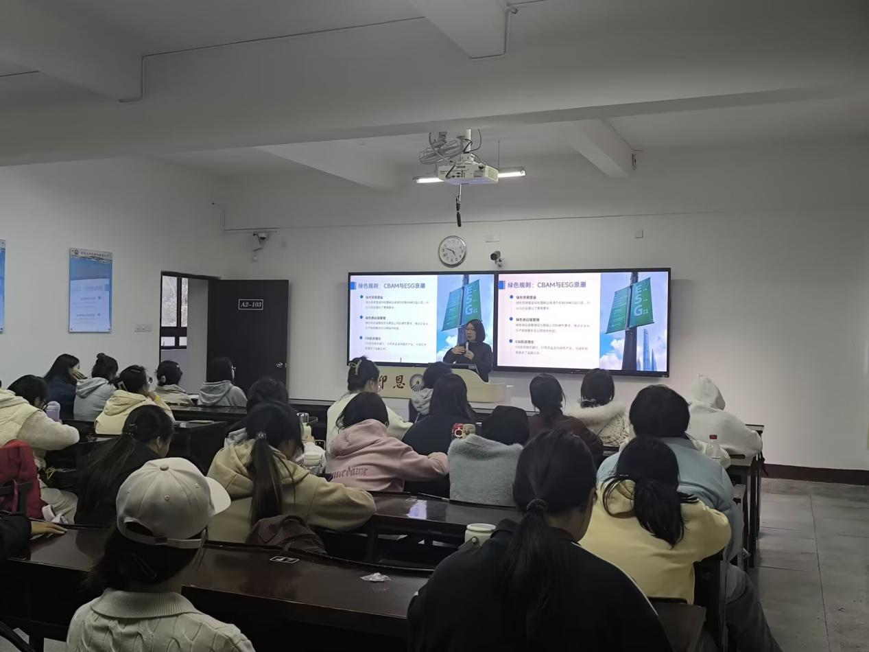 张雪梅老师结合自身专业背景与教学实践经验,围绕习近平新时代中国特色社会主义思想的核心要义,重点阐释了习近平经济思想的深刻内涵与实践指向。她通过剖析当前国内外经济形势、新发展格局构建以及福建在新时代发展中的区位优势与政策机遇,引导参会成员深刻理解党的创新理论在指导经济高质量发展、推动中国式现代化建设中的重要作用。授课内容紧密联系实际,案例生动,逻辑清晰,既有理论高度,又贴近学生认知实际。学习过程中,张雪梅老师注重与参会成员的互动交流,鼓励大家结合国贸专业学习,思考如何在国家发展大局中找准个人定位,将专业知识学习与服务国家战略需求相结合。大家认真聆听,积极回应,现场学习氛围浓厚。大家纷纷表示,通过此次学习,对习近平新时代中国特色社会主义思想,特别是习近平经济思想有了更系统、更深入的理解,进一步明确了作为新时代经贸学子所肩负的责任与使命。